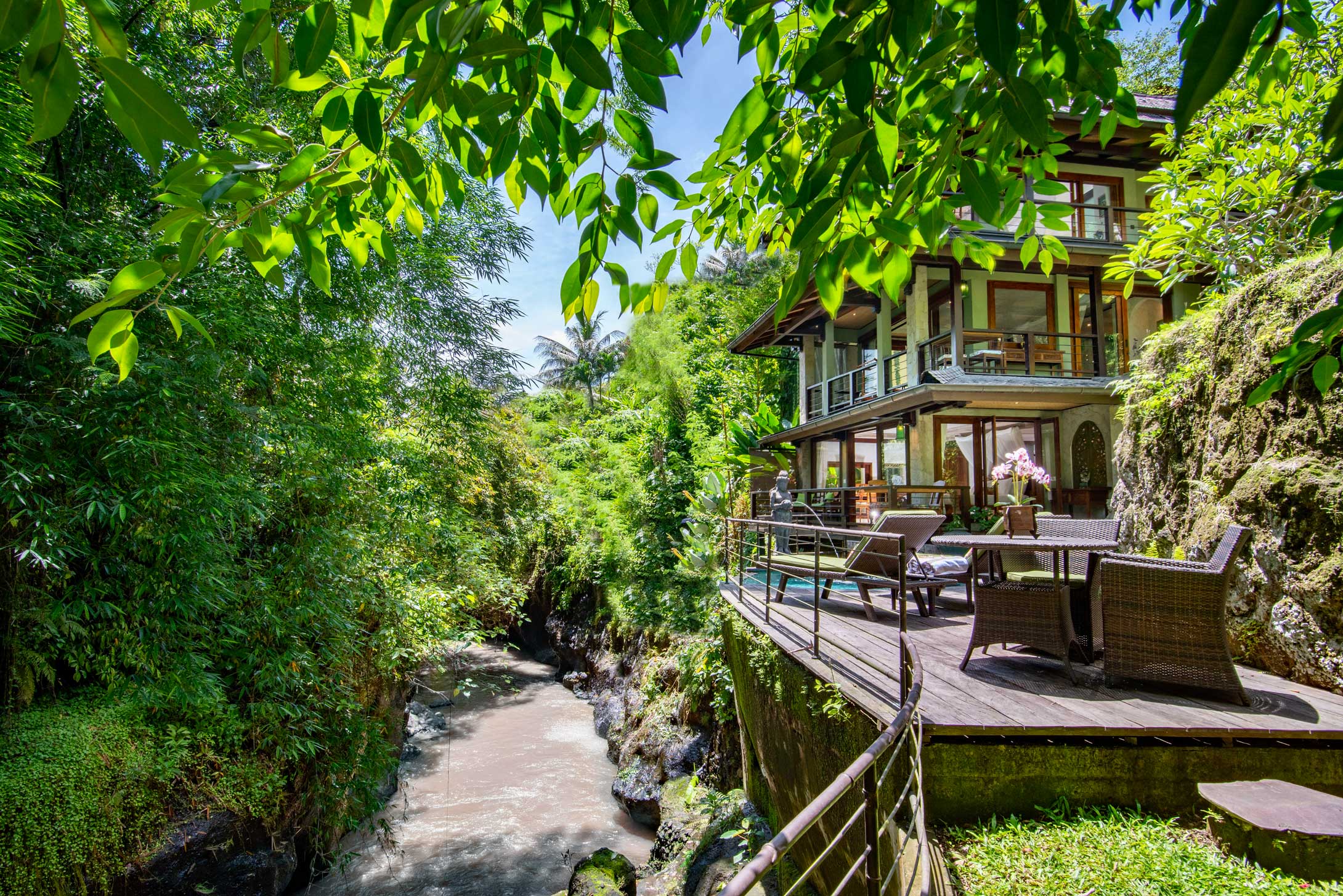 Every villa at Lumina is designed to feel open to the surrounding jungle. Natural materials, carved wood details, and warm textures create spaces that feel both grounded and refined. Large terraces and open-air elements allow the landscape to remain present throughout the stay.